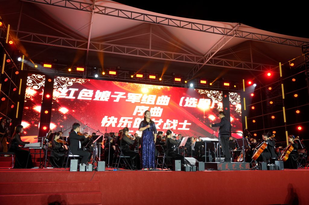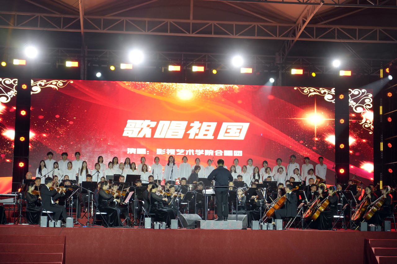 音乐会下半场,《炎黄风情》组曲选段以四川民歌《太阳出来喜洋洋》、河北民歌《对花》等为素材,展现中国民俗的鲜活图景;《红色娘子军》组曲通过《序曲》与《快乐的女战士》,再现革命年代的青春活力。终曲《歌唱祖国》由影视艺术学院合唱团与交响乐团联袂呈现,全场观众自发合唱,五星红旗在体育场内飘扬,将爱国情怀推向顶点。