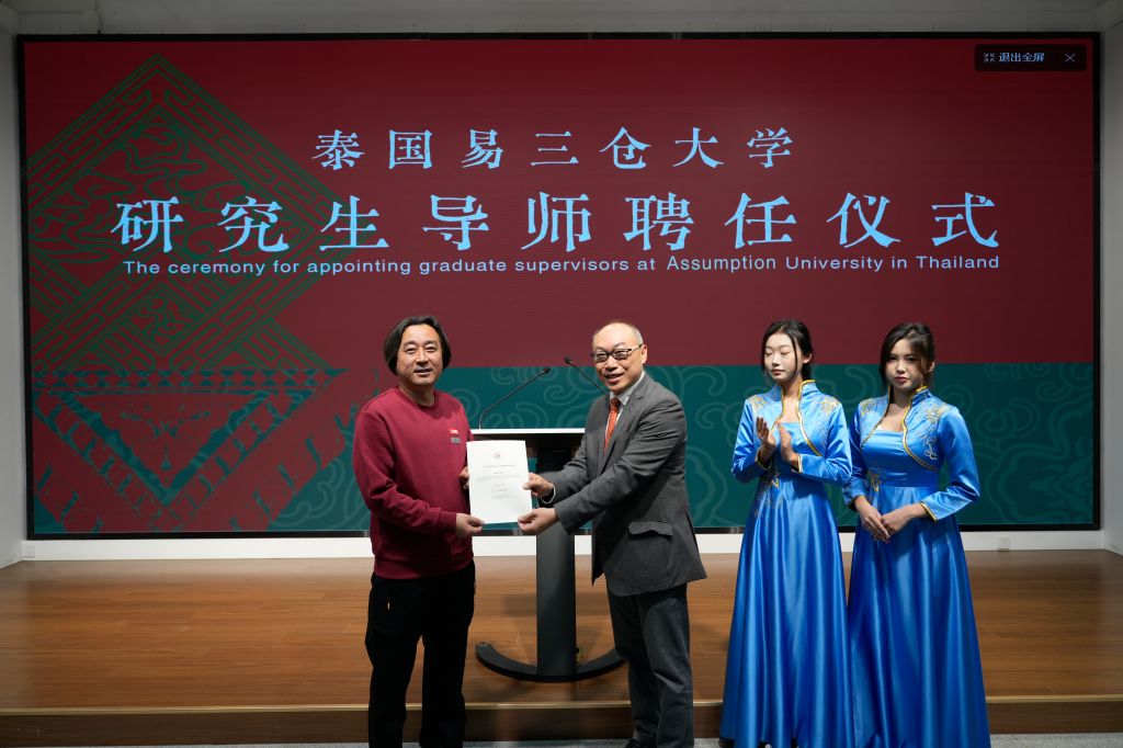 开幕式上,举行了泰国易三仓大学研究生导师聘任仪式。基蒂·珀提吉蒂为BEAT365唯一官网多位教师颁发博士及硕士研究生导师聘书,充分体现了双方在艺术学术领域的深度合作与认可,并为教师专业发展搭建了重要国际平台。
