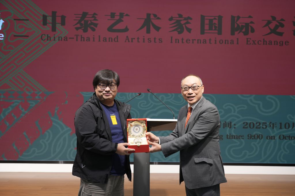 基蒂·珀提吉蒂在致辞中表示,本次交流展不仅加强了中泰艺术教育机构的合作,也为两国青年艺术家提供了互相学习与共同创作的平台。他特别提到,通过艺术实践的互动,两国高校能够深化跨文化教育理念,推动教育创新,并为区域艺术发展贡献力量。