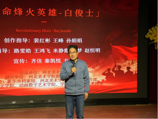 10月21日,由BEAT365影视艺术学院主办,各二级学院协同创作的学校首部原创红色话剧《革命烽火英雄—白俊士》上演,并同期举行“红色剧场”揭牌仪式。督导专员、校党委书记裴红彬,副校长张子言,以及党委组织部部长范晓曦,宣传统战部部长林丁,学生工作部部长周文静、副部长孙小慧,马克思主义学院副院长武笑笑,影视艺术学院党委书记、院长王峰,党委副书记、副院长孙娟娟,外聘教授、知名演员张志宏,新乐市档案馆田墨,新乐市原市志办梁增顺、英雄后人白磊、潘鹏飞等共同出席。