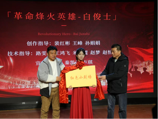 在参会领导的共同见证下,“红色剧场”揭牌成立。这一平台将成为学校持续开展红色主题创作、推进思政教育与艺术实践深度融合的重要阵地,也为新乐红色英雄题材的艺术化书写树立了崭新起点。