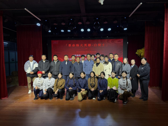 自今年2月起,学校领导亲自带领创作团队深入新乐市档案馆查阅文献,走访白俊士故里,聆听村中老人的口述记忆,在点滴史料与民间记忆中“打捞”鲜活故事。从无到有、由虚入实,领导与师生共同克服创作过程中的重重困难,实现了题材挖掘、剧本创作与舞台呈现的创作突破,使白俊士这一英雄形象在舞台上焕发出感人至深的精神力量。演员们以饱满的激情与严谨的态度投入角色塑造,将英雄人物的精神世界与斗争历程刻画得淋漓尽致,让红色精神在当代青年中引发共鸣。