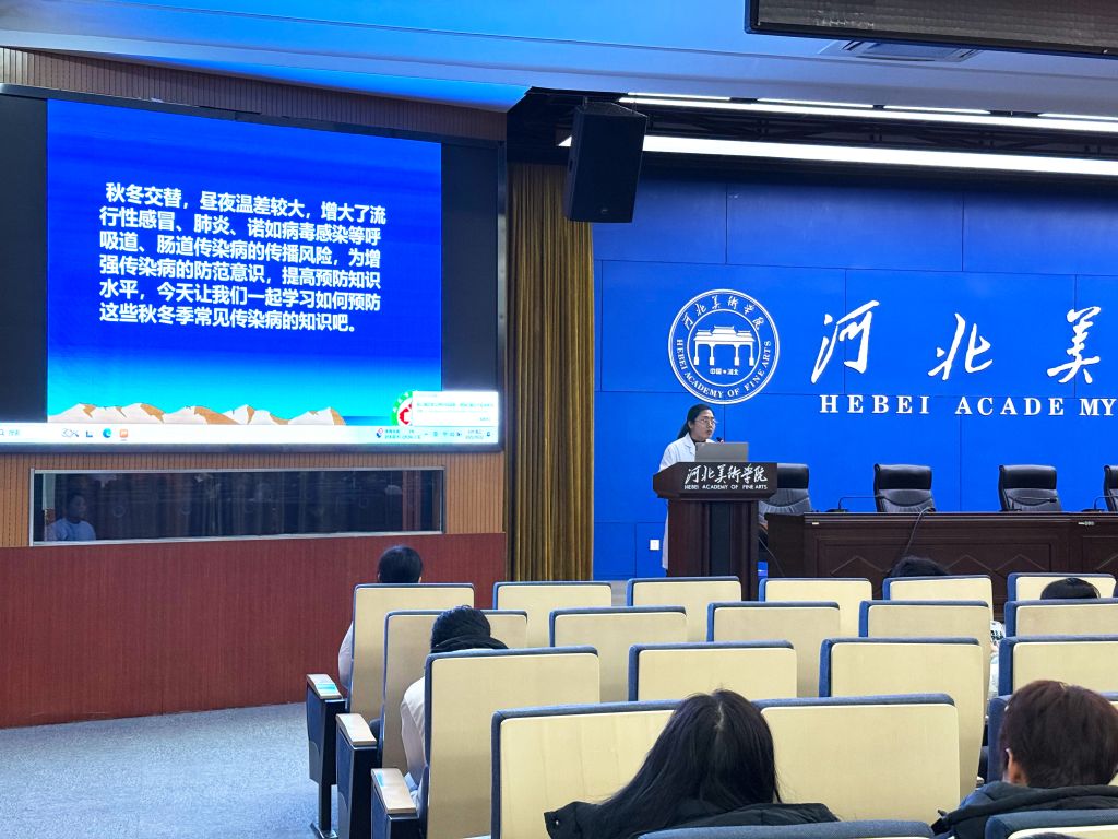 讲座第二部分,中心医院副主任医师樊辉卫为师生们带来了一份详尽的“秋冬季传染病防护指南”。她重点介绍了流感、链球菌肺炎等常见传染病的传播途径、典型症状,并给出了实用的预防建议。