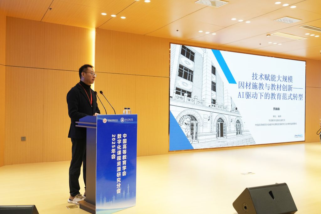 中国高等教育学会副会长、中国高等教育培训中心主任姜恩来在致辞中强调,人工智能技术的迅猛发展正深刻重塑各行各业,高等教育作为人才培养与创新创造的核心阵地,数字化转型已成为不可逆转的时代潮流。生成式AI、自适应学习系统等新技术的涌现,为破解教育资源均衡难题、实现大规模因材施教提供了全新可能,也为课程资源建设开辟了广阔空间。希望各位专家学者以本次会议为契机,深入交流AI与教育融合的前沿理念和实践经验,碰撞思想火花、凝聚发展共识。