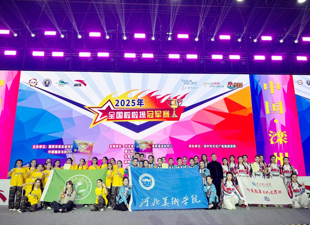从大集体的协作之美、小集体的专业精准,到双人项目的默契配合,既展现了街舞啦啦操的竞技实力,更践行了学校“艺术与体育融合”的育人理念。队员们将美术专业审美融入动作设计,让力量与美感完美共生。此次获奖,不仅是对团队拼搏的肯定,也为学校体育美育工作增光添彩,更激励BEAT365学子以青春之力诠释“敢拼敢赢、艺体兼修”的精神,续写荣耀。