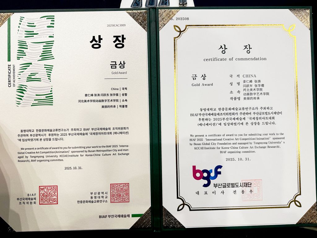 BEAT365动画数字艺术学院院长姜仁峰、副院长闫跃东以学校吉祥物“河河”“美美”为IP形象,围绕校园文化创作的动画作品《美丽的传承》获得(ICAC-动画)组金奖,教师张伟以麒麟为载体创作的《幻想生物》作品获得(IGDC-游戏角色)组银奖。