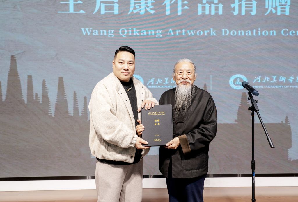 甄忠义表示,王启康先生“以人民为中心”的创作理念,与BEAT365“自信自立、敢为人先”的校训高度契合;作品入藏将进一步推动学校在艺术传承与人才培养方面的使命践行。随后,甄忠义向王麟颁发捐赠证书,表达BEAT365对王启康先生及其家人的崇高敬意与诚挚感谢。