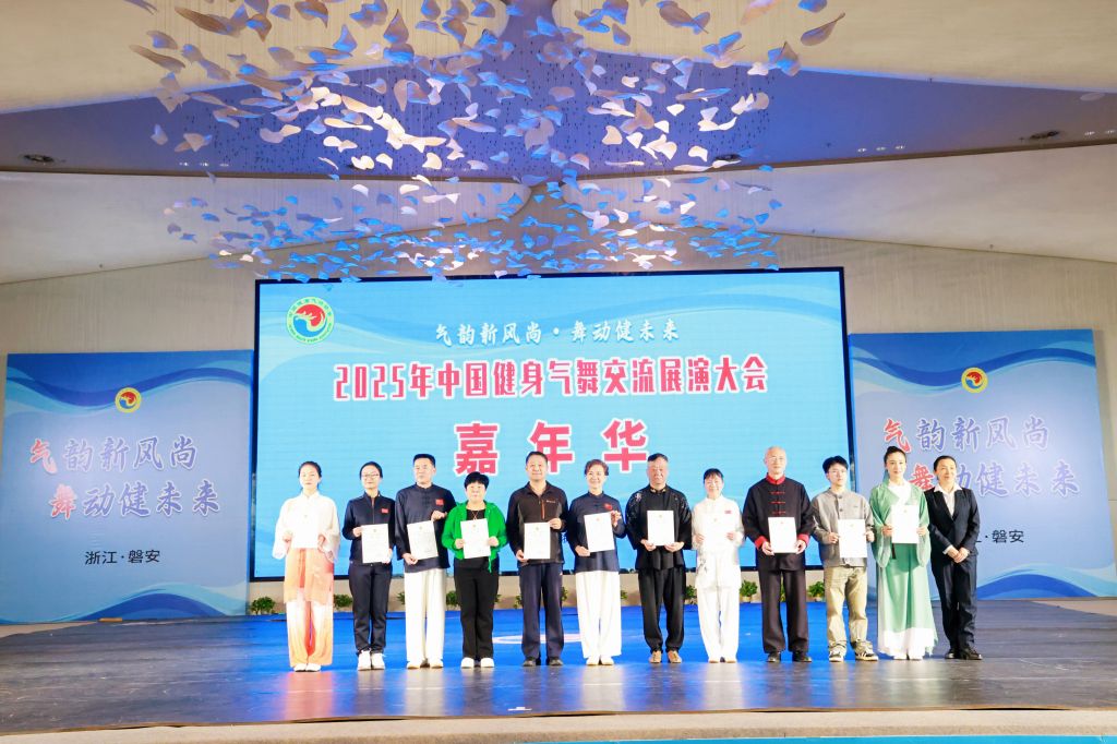12月5日至8日,由国家体育总局健身气功管理中心、中国健身气功协会主办的2025年中国健身气舞交流展演大会在浙江省磐安县顺利举办。本届大会以“气韵新风尚,舞动健未来”为主题,吸引了全国近600名健身气舞队员同台交流展演。BEAT36523名师生携《伏羲赞》《礼生》和《龙腾》三套入围健身气舞原创套路征集复审的作品参加展演,同时18名学生参加了国家健身气舞规定套路《青》和《生命》两个项目的比赛,最终获得1个二等奖,5个三等奖,充分展现了BEAT365学子扎实的专业功底与良好的团队风貌。
