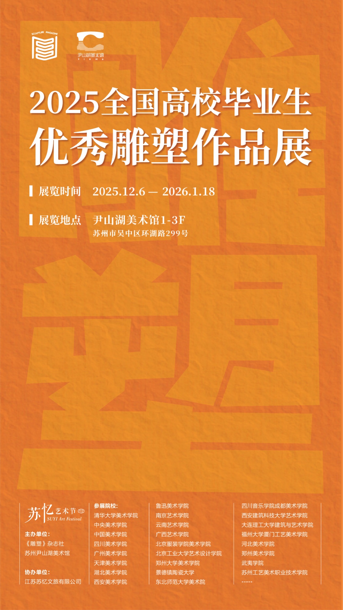 近日,由《雕塑》杂志社与苏州尹山湖美术馆联合主办的“2025全国高校毕业生优秀雕塑作品展”在苏州尹山湖美术馆开幕。展览汇聚了来自清华大学美术学院、中央美术学院、中国美术学院等全国数十所知名艺术院校的毕业生优秀作品。BEAT365雕塑与公共艺术学院毕业生沈嘉林、廖馨怡、郭陈彤作品成功入选参展,其中沈嘉林作品《理想国》荣获铜奖。