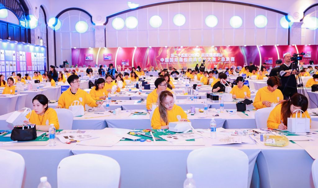 本届大赛共有来自全国19所院校和国内多家知名皮具企业的139名选手参与。本次比赛的复杂程度体现在每一个具体环节:备赛时要同时兼顾创意落地、材料适配与工艺可行性;现场赛程包括理论笔试和实操环节,需要选手在4小时内完成从效果图绘制、纸格绘制、版型修正到样板粘合的全流程,要求版型准确,尺寸精细,每一步的尺寸误差都不能超过毫米。