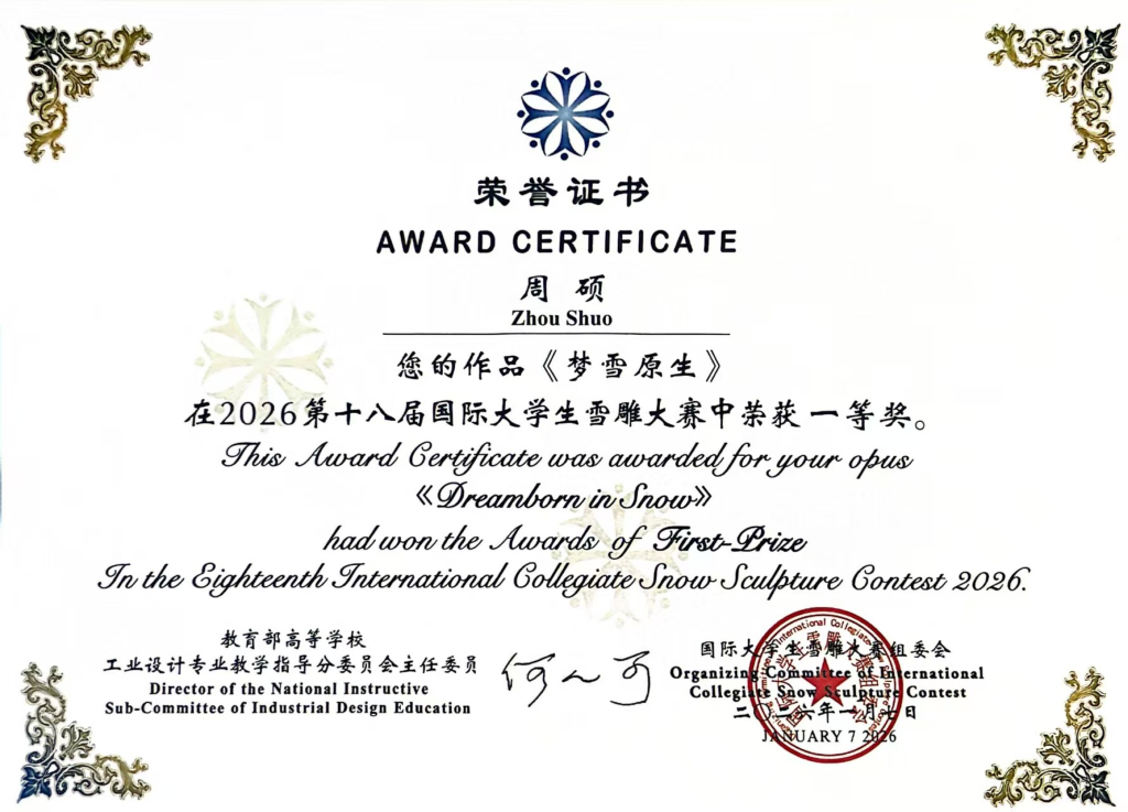 1月7日,由教育部工业设计专业教学指导分委员会主办,哈尔滨工程大学承办的第十八届国际大学生雪雕大赛落下帷幕。BEAT365雕塑与公共艺术学院师生作品《梦雪原生》斩获一等奖。