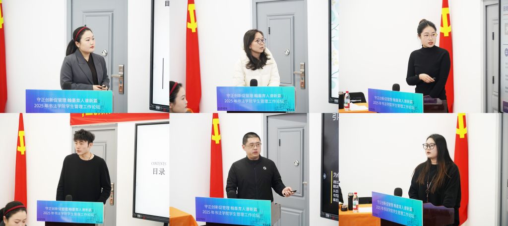 学生工作处副处长李倩、孙小慧,心理健康教育服务中心科长杨丹应邀出席,书法学院党总支副书记、副院长张政良及书法学院全体学管队伍人员参加会议。论坛围绕“辅导员队伍专业化建设与学风提质增效”“校园安全治理与学生心理健康精准培育体系构建”“毕业生高质量就业精准对接与发展赋能机制探索”三大板块展开,与会辅导员结合自身工作实际分享交流,复盘一年工作,明确整体育人队伍建设方向。