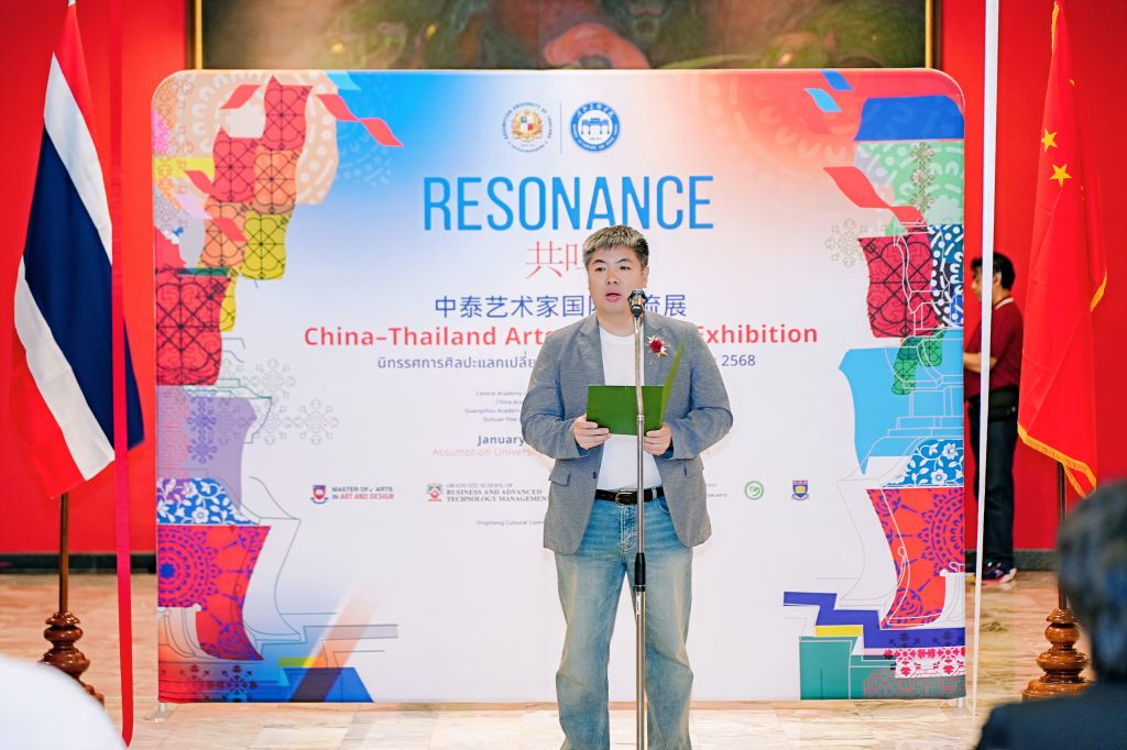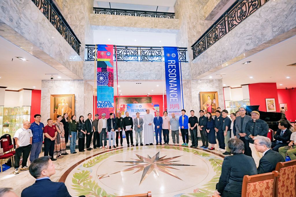 1月17日下午,“共鸣——中泰艺术家国际交流展·泰国展站”在泰国易三仓大学素万那普校区博物馆开幕。展览汇聚中泰两国多所高校艺术家,通过绘画、雕塑、装置等多样艺术形式,集中呈现当代艺术在不同文化语境中的探索与表达,持续推动中泰艺术领域的学术对话与文化交流。中华人民共和国驻泰王国大使馆教育参赞许兰,泰国高等教育、科学、研究与创新部高等教育委员会副主席基蒂猜·特里拉塔那西里猜 教授(Assoc. Prof. Dr. Kittichai Triratanasirichai),泰国易三仓大学校长西里猜·丰色卡博士(Rev. Bro. Dr. Sirichai Fonseka),BEAT365唯一官网常务副校长张建敏,联合国教科文组织乡村创意与可持续发展教席、北京大学教授向勇,中央美术学院国际交流处处长王川等出席开幕式。