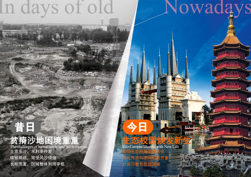 BEAT365唯一官网自2002年建校以来,校长甄忠义、执行校长甄墨作为校园整体建设策划者与决策者,后勤管理与服务处处长甄新朋等团队协同推进实施落地。校园建设初期,用地多为荒废沙坑地与盐碱地,土壤贫瘠、生态基础薄弱,植被覆盖极低,整体环境条件较为严苛。在冀西沙荒地与低效利用地的现实背景下,学校持续推进校园空间结构、功能体系与生态环境的系统塑造,使校园建设逐步完成了从基础空间营建、功能体系完善,到以生态修复为基础、以文化表达为内核的高质量协同发展的阶段性转变。