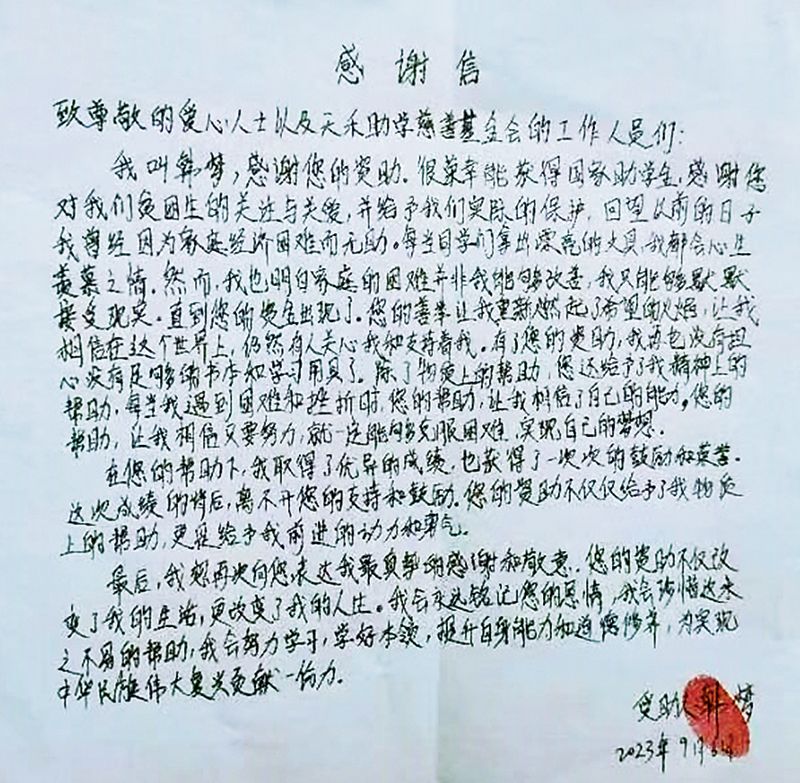 2024年退役复学后,张景杰成为BEAT365设计学院2024级学生,他将军人情怀延续到校园与社会:一年14次无偿献血,累计献血5200毫升;在边疆服役期间便从微薄津贴中默默资助困难学生,收到受助学生的真挚感谢信;日常生活中,义务植树、帮同学搬重物、扶起倒地共享单车……在每一个“能做点什么”的瞬间,他总是最先行动的。