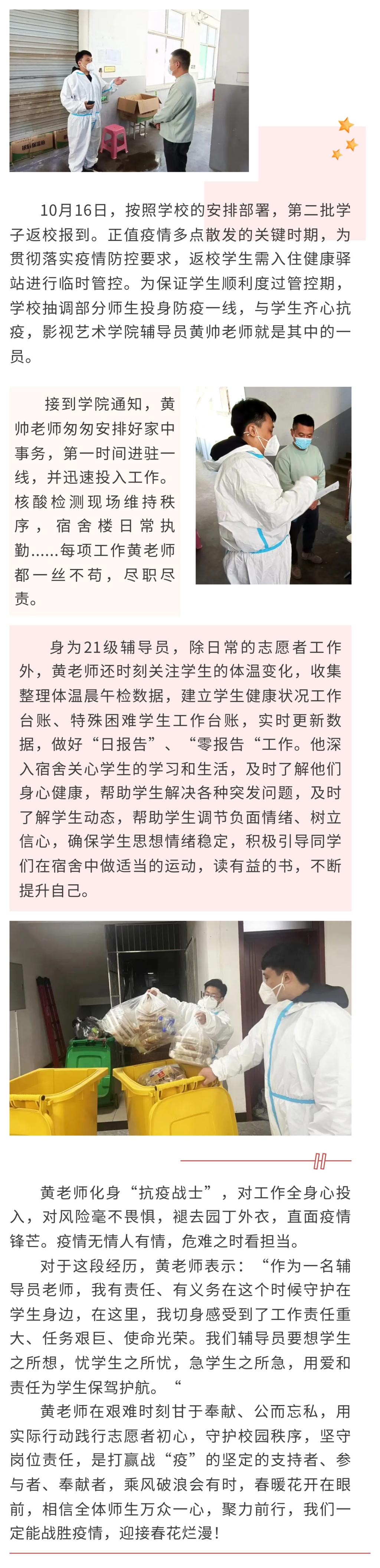 【美院之星】疫情面前无小事,防控行动敢当先 —记影视艺术学院黄帅老师