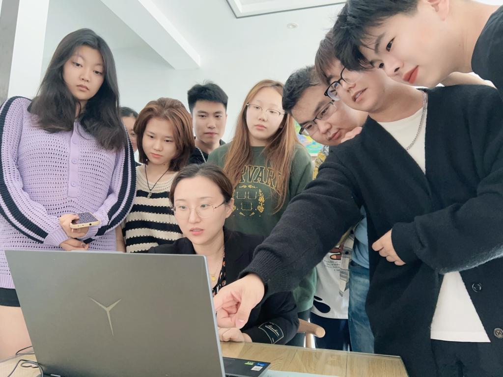 挂断电话,王老师深吸一口气,转过身微笑着与同学们讨论起作品和第二天比赛的注意事项。临别时她叮嘱学生:“今晚我一直在这,有什么问题直接来找我。”
