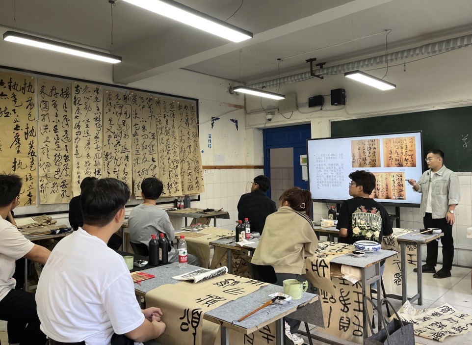 在教学上,邢老师作为专业班主任,始终保持着严谨的治学态度。他深入研究教材,精心设计每一堂课,力求让学生在轻松愉快的氛围中掌握知识。同时,邢老师勇于探索创新教学方法,通过开展各种实践活动和课堂互动,激发学生的学习兴趣和创造力。同时,他积极参与各项科研建设,2023年7月《颜系行草2(唐五代书法史论)》校级课程思政示范课程顺利结题,目前,又参与《民办高校书法学专业课程体系再构建研究》校级教改项目、《篆刻学人才培养体系研究》思政类教改项目、《学科核心素养导向下高校书法教学策略探究》教改项目,并为《书法学专业史论类课程教学方法研究》教学团队项目成员。