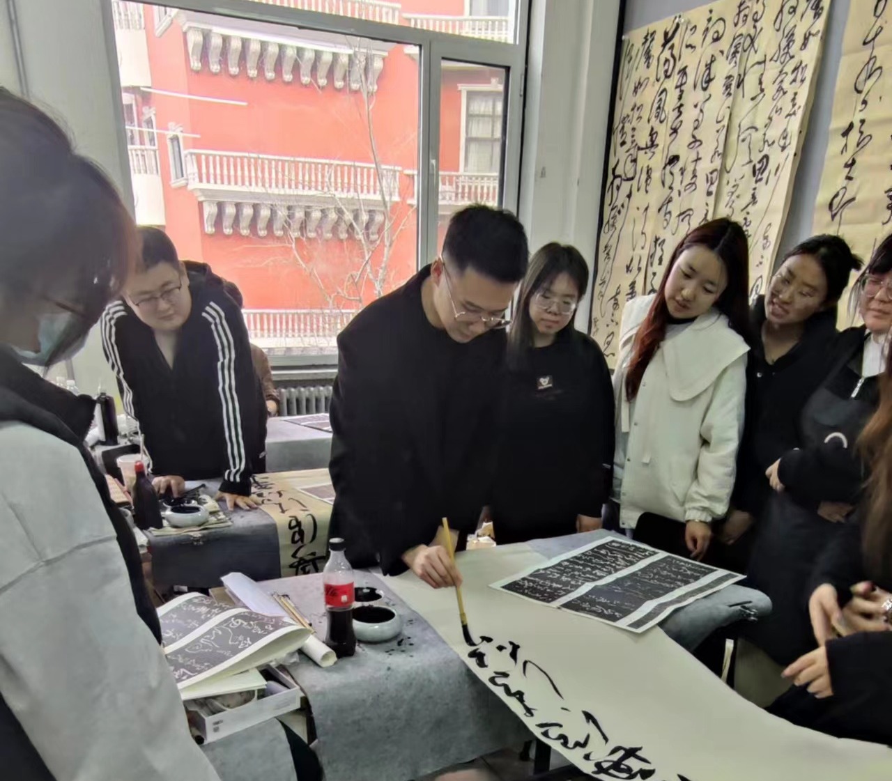 在山西青铜博物馆,成老师为学生现场讲解徐渭等名家真迹,学生热情高涨。面对徐渭的巨幅作品,学生被其磅礴气势所震撼,这种体验远胜于课本上的局部和缩小图片。这次求学之旅,使得很多同学对明清书法有了新的认识,并且开始敢于书写大字,一改往日偏爱写小字的习惯,这在书法学习的道路上无疑是一种转折。