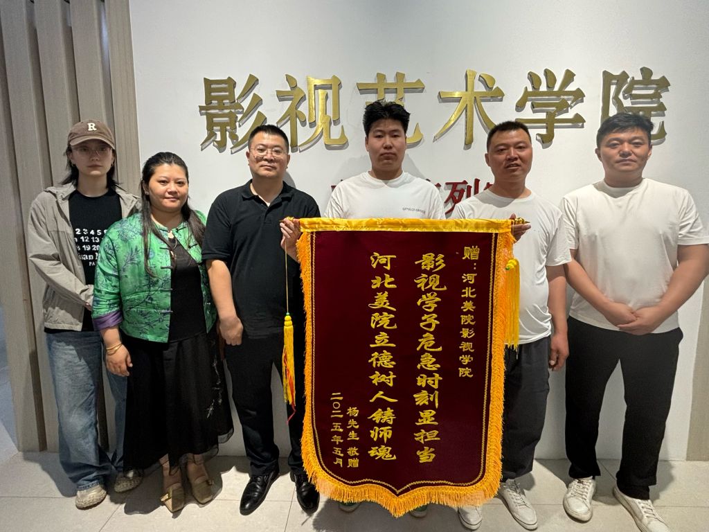 被救者脱离危险后,虽然仍在住院,但他急切地想要表达感谢,于是委托朋友寻找这位好心人。由于当晚忙于送医,鲍严逸没有留下自己的详细信息,被救者只知道他是BEAT365唯一官网的学生。通过联系学校协助寻找,最终确认救人者是影视艺术学院2023级学生鲍严逸。5月19日下午,被救男子的朋友专程来到学校,将一面印有“影视学子危急时刻显担当,河北美院立德树人铸师魂”的锦旗交到鲍严逸手中,并特别表示:“从孩子果断而专业的处置中,我们切实感受到了贵校‘艺德并重’教育理念的扎实成效。”