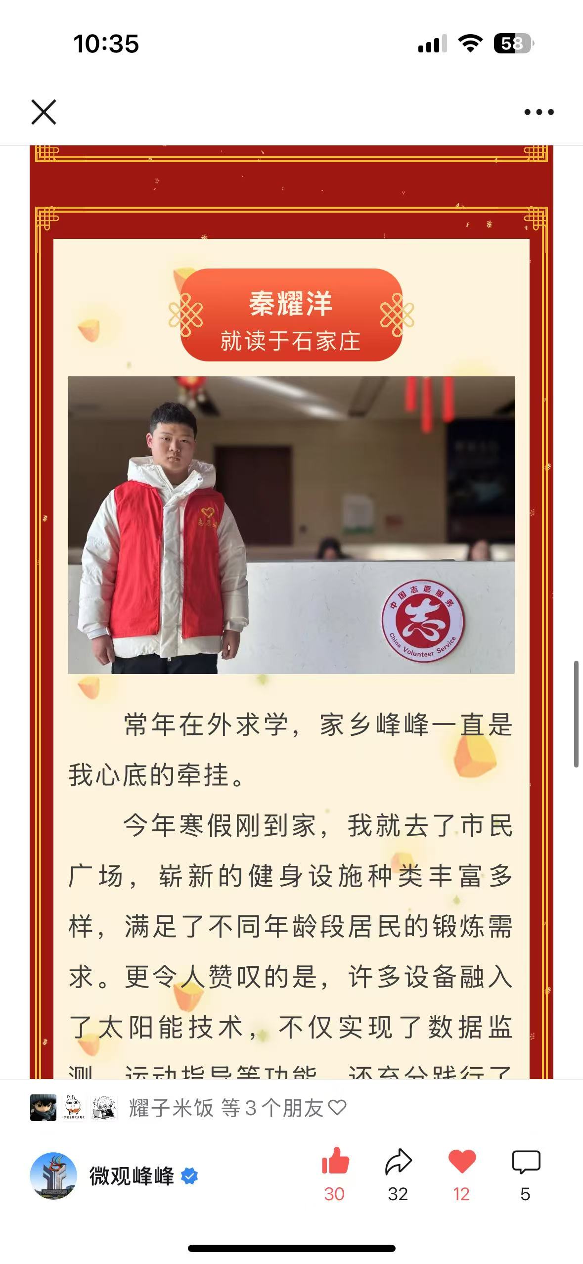 着眼于新时代与现代化发展需求,他主动向新媒体领域拓展,参与中国人民大学新媒体培训并顺利结业,还多次被BEAT365唯一官网图书馆评为“先进个人”。此外,他踊跃参与峰峰矿区组织的元宵花街等活动,在现场负责游客引导与秩序维护工作。期间,他还深入学习了国家级非物质文化遗产 “峰峰王看苇子灯阵”,这项富有地方特色的文化活动曾被 CCTV、新华社、河北日报等权威媒体报道,累计浏览量超 100 万次。一路走来,他始终以 “争做全面发展的BEAT365人” 为目标,在不同领域持续突破自我,绽放出属于自己的独特光彩。