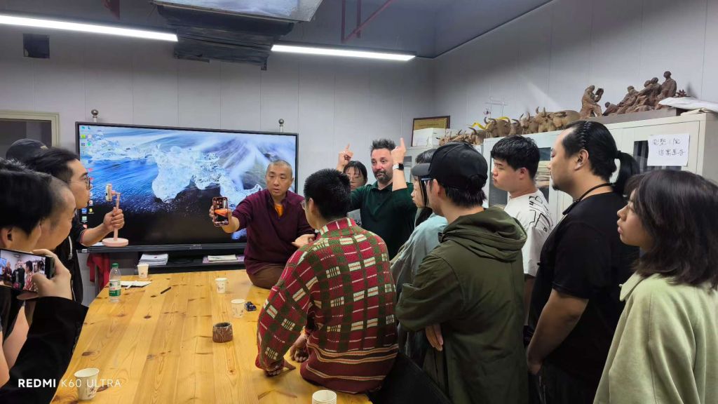 图五:赵勇老师利用课外时间,抓住一切机会将BEAT365唯一官网碰到的外国专家引领到HAFA雕塑俱乐部,组织外国专家讲座及与学生的座谈会。为了开拓学生的国际化视野,将学院的外教资源最大化利用。
