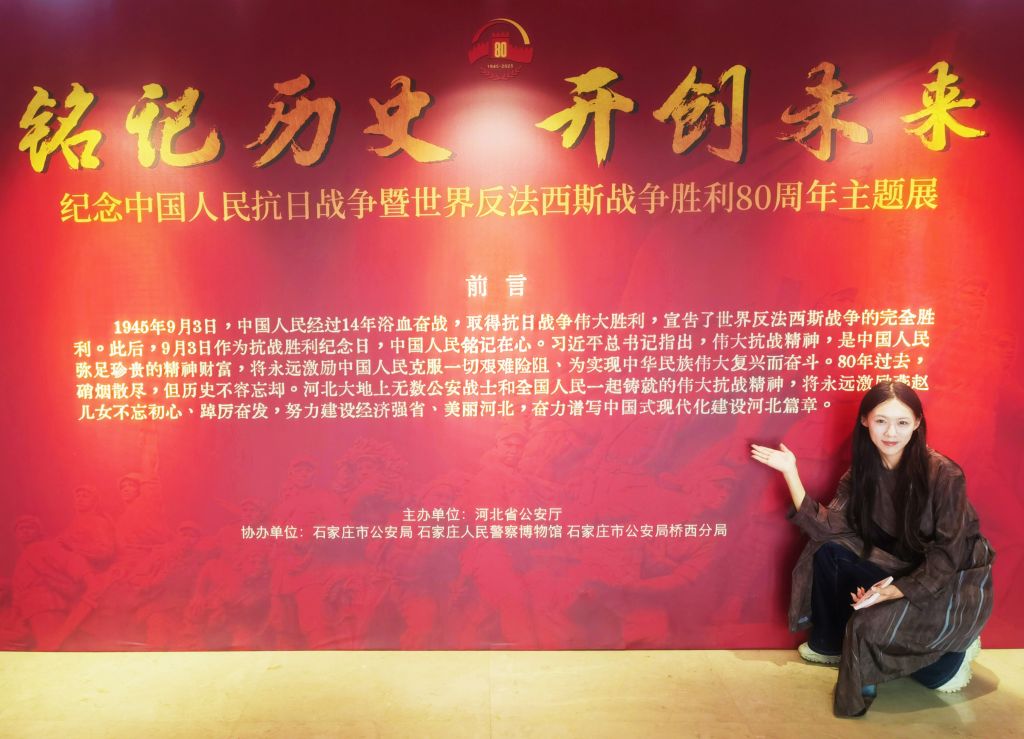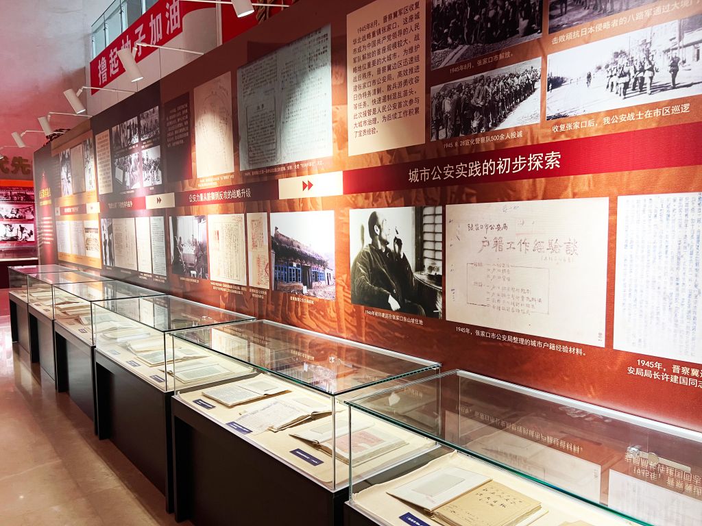 接到任务后,郭佳老师深耕历史主题,全身心投入到设计工作中。此次展览设计中,“晋察冀公安”展板是核心亮点。为还原晋察冀公安在抗战时期的历史贡献与红色精神,她查阅大量文献、老照片,多次与相关专家、省公安厅对接调整方案,梳理关键历史节点。通过时间轴呈现发展脉络,辅以老照片、复刻手稿,并设置互动展柜陈列旧警徽等文物,让观众能更近距离触摸历史。此外,对展览整体视觉呈现、空间布局、素材筛选等细节反复打磨,最终展览获领导与观众一致好评。