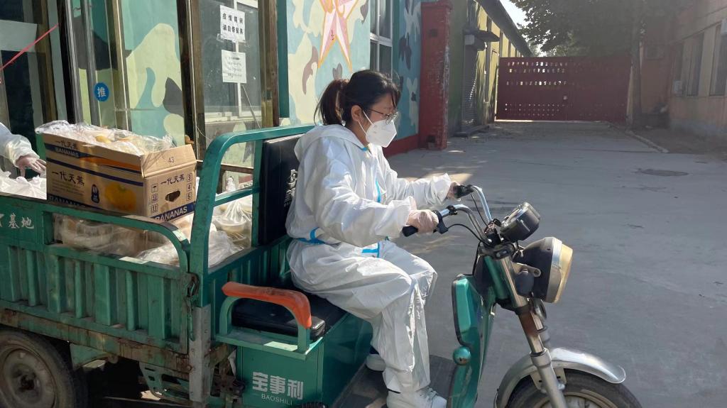 一辆电瓶车,两栋宿舍楼轮流使用,不论男老师还是女老师,都能化身骑手,拉着满满一车的餐食,穿过大院,送至宿舍楼下。