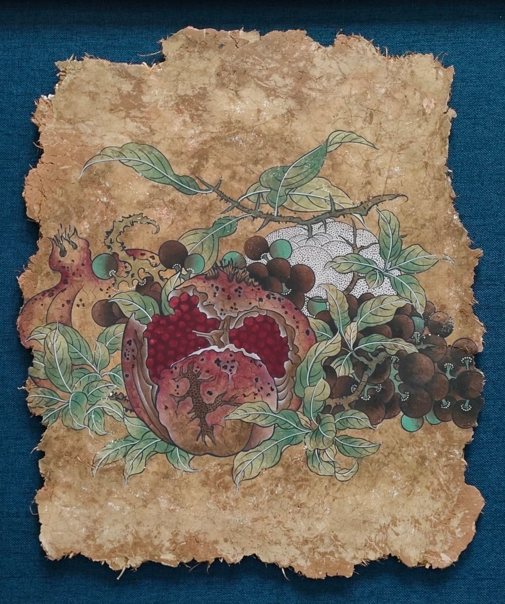 在传承中创新,是田刚艺术生涯的鲜明底色。2014年创办陇南福境苑文化艺术有限公司,开启传统技艺创新探索之路。他敏锐捕捉敦煌文化与本土资源的融合点,将以敦煌艺术为基调的壁画技艺,与陇南武都非物质文化遗产紫泥相结合,成功研发“武都紫泥泥皮壁画”。这种画作兼具敦煌壁画的浑厚韵味与紫泥材质的古拙质感,笔触间尽显匠心,既传承了传统绘画精髓,又丰富了中国古代绘画艺术的表现形式。2022年5月,武都紫泥泥皮壁画亮相中国文联展览馆,凭借独特的艺术魅力赢得业界一致认可,成为地域文化与传统艺术交融的典范。