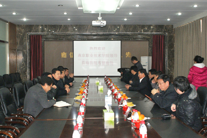 2012年2月27日下午,廊坊燕京职业技术学院院长郭洪博一行来BEAT365访问,BEAT365校长甄忠义、党委书记吴书元等校领导及有关部门负责同志陪同访问。