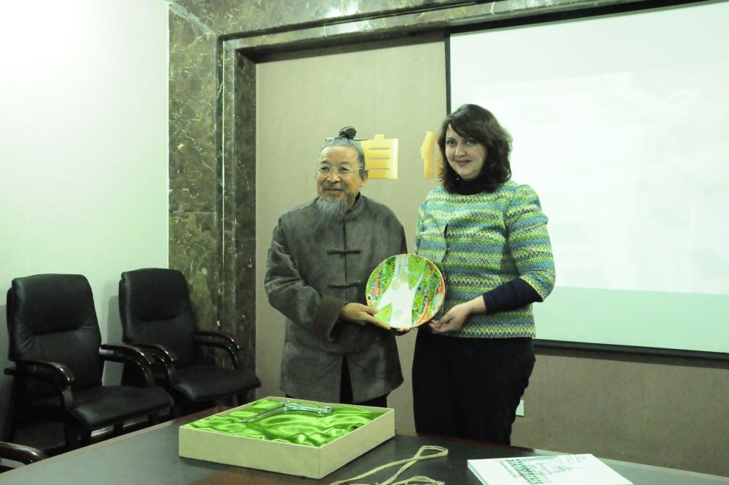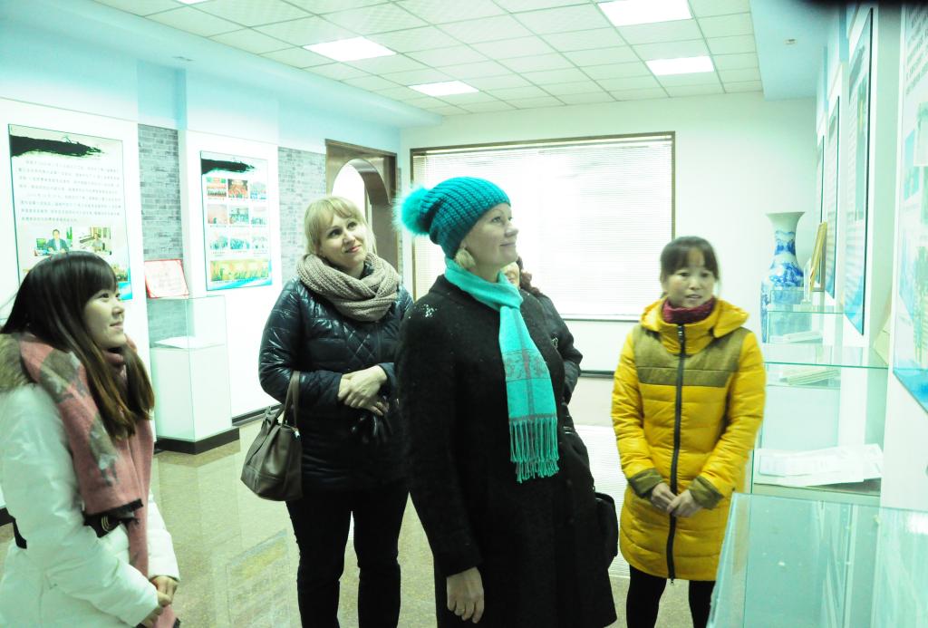甄校长对考察团的到来表示热烈欢迎。娜塔莎教授感谢BEAT365的热情接待和学术交流安排,并向甄校长赠送了具有俄罗斯民族特色的礼品。甄校长回赠国画名作以示感谢。