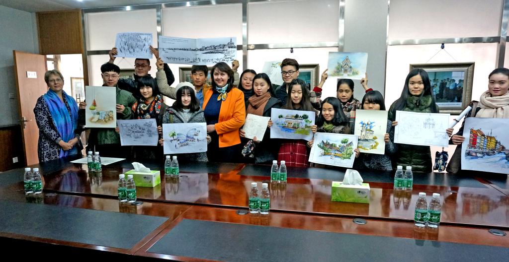 访问期间,随访的叶琳娜教授为BEAT365师生做 “现代文化背景下的木质结构建筑”的精彩讲座,并与师生进行艺术交流。