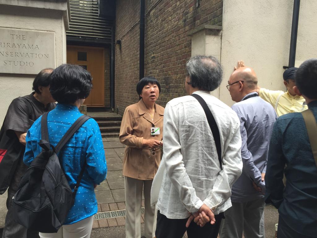 当天上午,甄校长一行受到大英博物馆东方书画修复中心负责人邱锦仙老师热情接待。随后,他带领甄校长等人参观了修复中心及正在修复的古画。椐邱老师介绍,博物馆内展出的中国古代书画,均在这里修复、装裱,如《女史箴图》等名画。