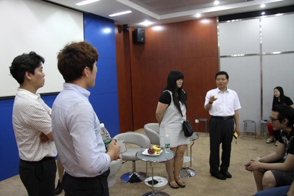 在国际教育学院公共课教室,朴部长与国际教育学院中韩国际班学生进行了亲切交流。朴部长向学生就韩国湖南大学的办学状况、奖学金政策及在韩留学生活进行了详细的介绍。通过朴部长的阐释,增加了国际班学生对韩语学习的热情和信心。