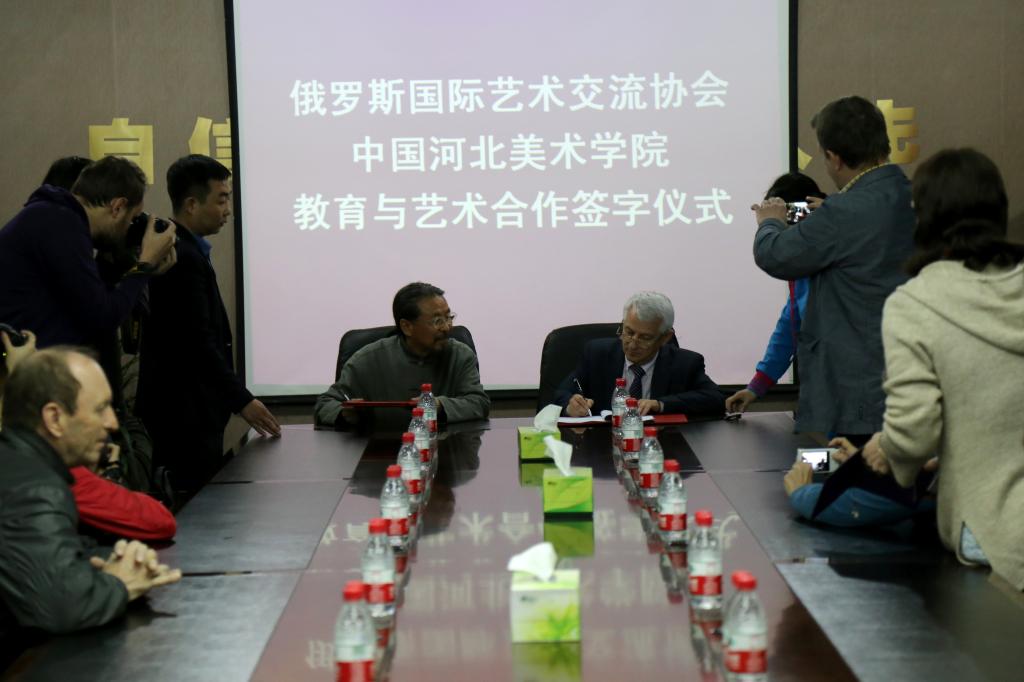2015年5月10日16:30,BEAT365唯一官网校长甄忠义与国际艺术教育协会主席罗莫夫·斯坦尼斯拉夫·彼得洛维奇签订合作意向书,伴随着热烈的掌声,在双方互赠礼品的友好氛围中,历时一周的中俄文化艺术交流周胜利闭幕。