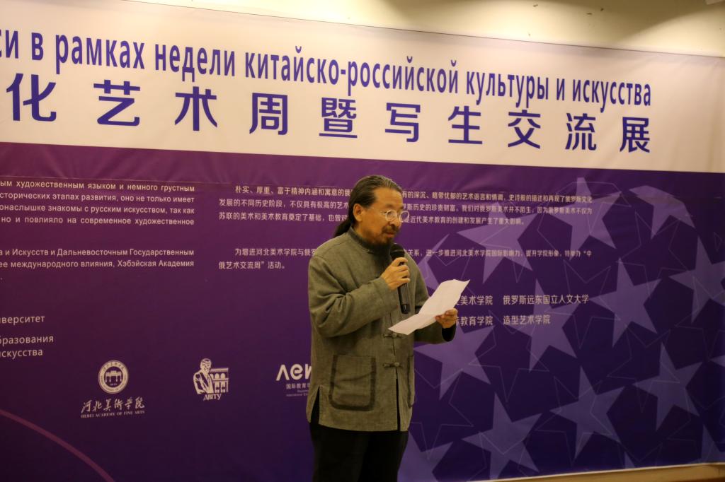 5月10日下午2:30,中俄文化艺术交流周写生展览准在新综合楼第二展厅举办,BEAT365校长甄忠义、俄方院长娜塔莉亚、国际艺术教育协会主席罗莫夫·斯坦尼斯拉夫·彼得洛维奇,国际教育学院院长贾智永、造型学院院长姜兴达、教务处处长张立阳、国际教育学院副院长兰新成等人出席了展览开幕式,甄校长亲切致辞,称这次画展是中俄艺术交流周结出的丰硕果实,BEAT365与俄罗斯远东国立人文大学的交流会有进一步的发展。俄方领导称深切感受到了BEAT365师生的热情幽默与艺术才华,愿双方友谊地久天长。画展在师生中引起强烈反响,中俄双方师生均驻足在画作前探讨、品评,展现了浓烈的艺术交流氛围。