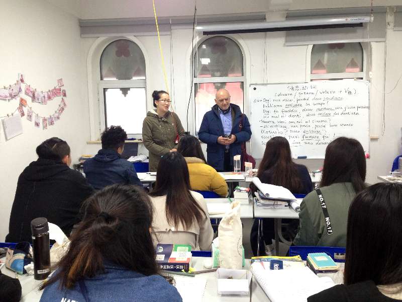 之后,Mauro Walter Pagnaneil教授来到国际教育学院的意大利语教室,跟学生们开展了一场精彩的互动活动,Mauro WalterPagnaneil教授指出,希望学生们用心学好专业知识,发挥自己的优势,争取在艺术专业开辟自己的方向,同时也表示,希望自己能够帮助学生们提高自身的专业基础。