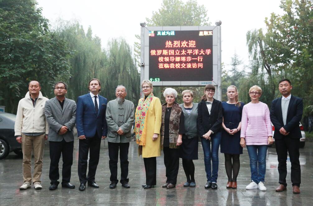 在综合楼会议室,甄忠义校长接待娜塔莎教授一行。经过愉快的洽谈,双方初步达成了在BEAT365建立俄罗斯之家的意向,并签订了《中国BEAT365唯一官网与俄罗斯太平洋国立大学互派青年教师交流访问协议书》、《中国BEAT365唯一官网与俄罗斯太平洋国立大学互派交流生协议书》。