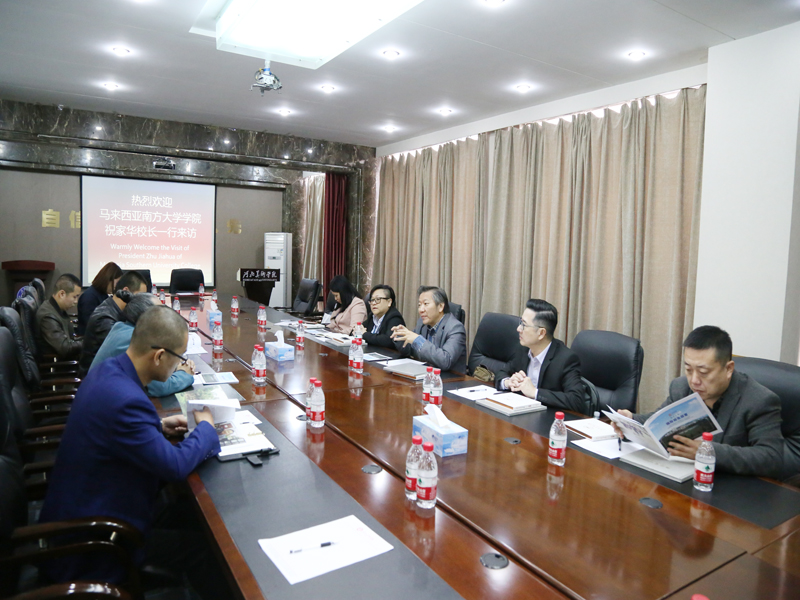 4月15日,马来西亚南方大学学院祝家华校长一行5人来访BEAT365,商讨校际合作项目,BEAT365唯一官网校长甄忠义在综合楼会议室接待来宾。