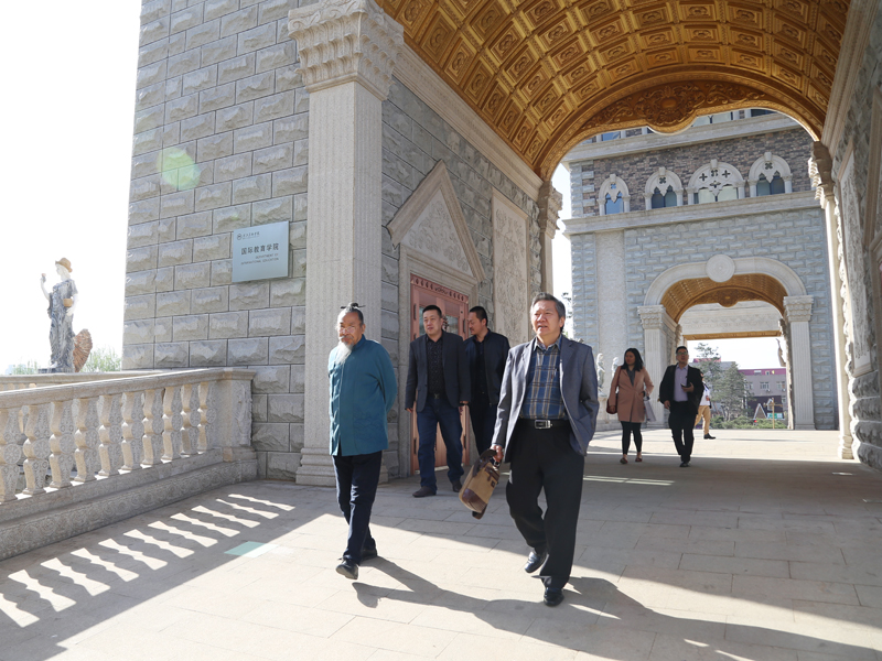 甄校长陪同祝家华先生一行参观了南北校区校园,介绍BEAT365办学状况及建筑风格。