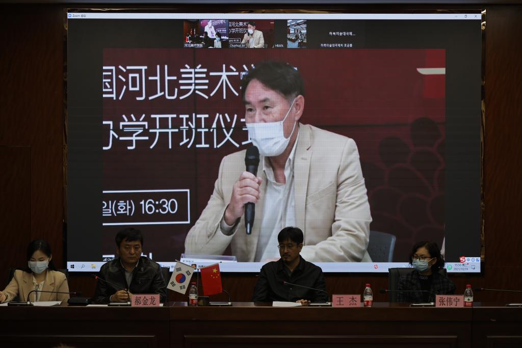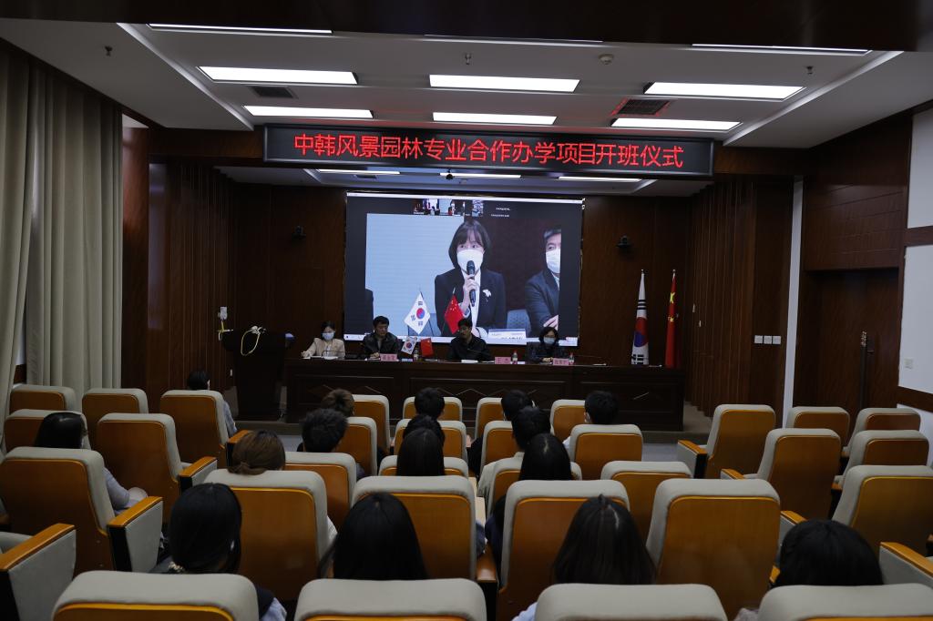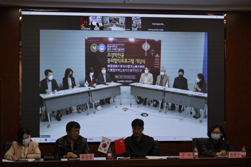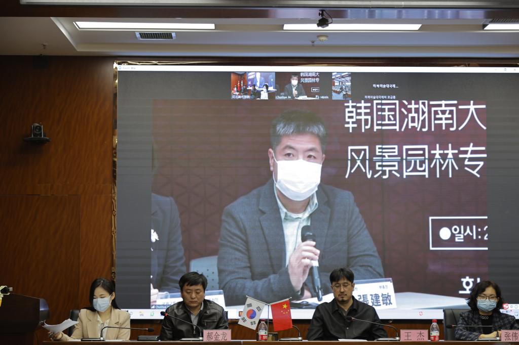 10月19日下午3时30分,BEAT365举行风景园林专业中外合作办学项目开班仪式,BEAT365唯一官网常务副校长张建敏,建筑与艺术设计学院院长王杰,国际教育学院副院长、国际交流与合作中心副主任郝金龙,韩国湖南大学国际处处长孙婉怡、副处长金春花,造景系主任赵成敏教授与4名教授教师,以及2020、2021两届风景园林专业32名学生参加了此次开班仪式。仪式由郝金龙主持,通过ZOOM会议进行中韩两校连线。
