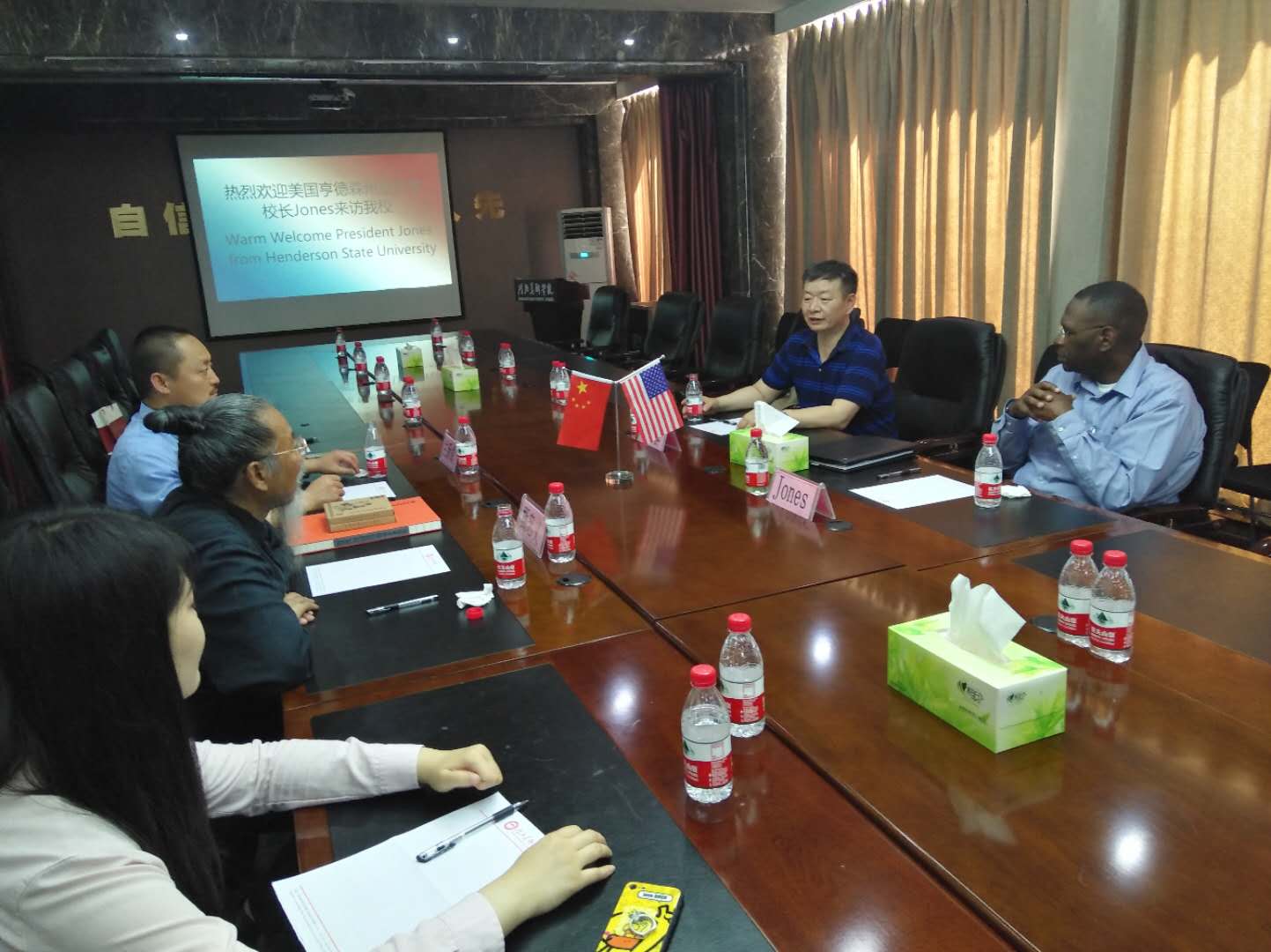 2019年5月23日上午10时,美国亨德森州立大学校长Jones一行来访BEAT365,校长甄忠义,国际交流与合作中心主任、国际教育学院院长兰新成陪同接待了来宾。