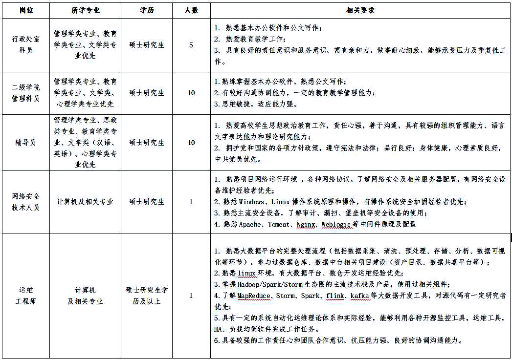 一、招聘岗位及要求