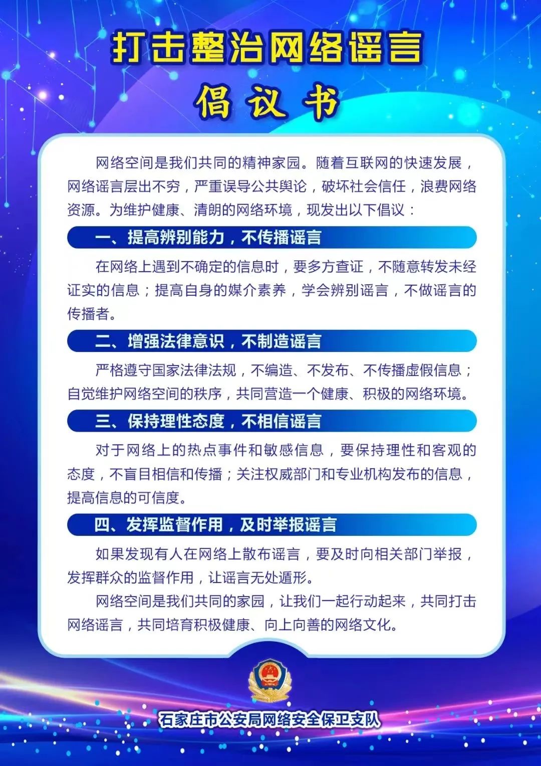 打击整治网络谣言倡议书