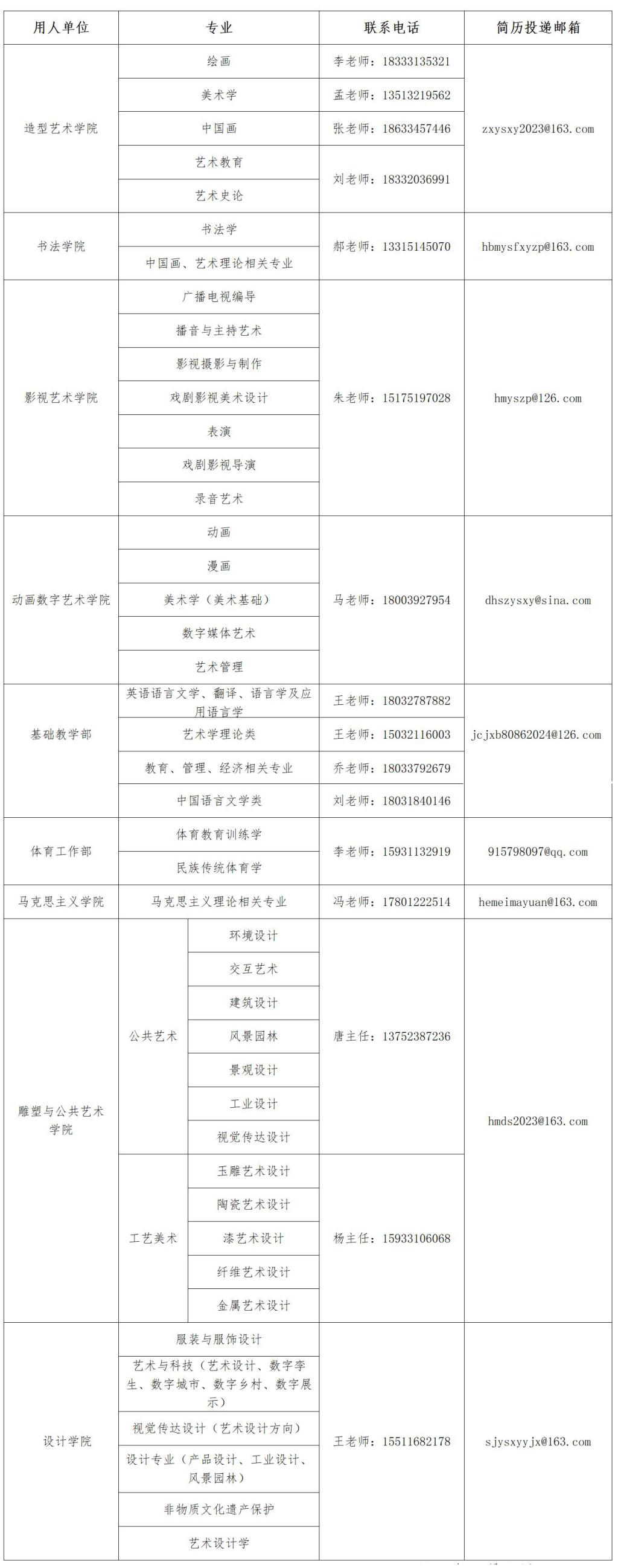 简历投递邮箱:hbmsxyrsc@163.com或相应二级学院邮箱;