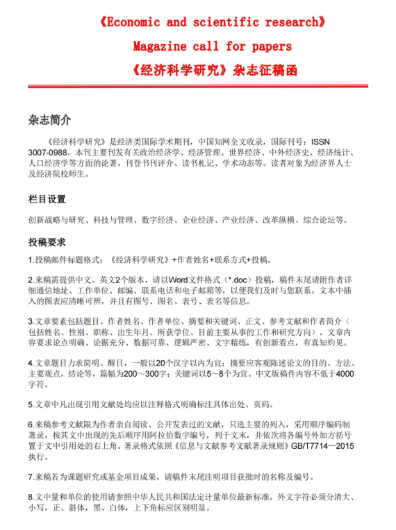 《经济科学研究》详见征稿函