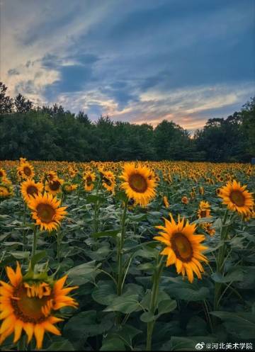 向日葵在余晖中伫立,它们仰望着天边的晚霞