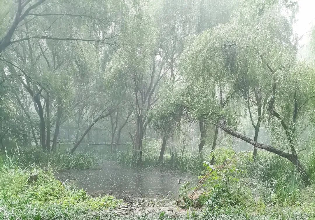 雨 慢慢滴落 雨滴变成雨丝 终成磅礴 一场夏日的雨 清凉了酷热的校园